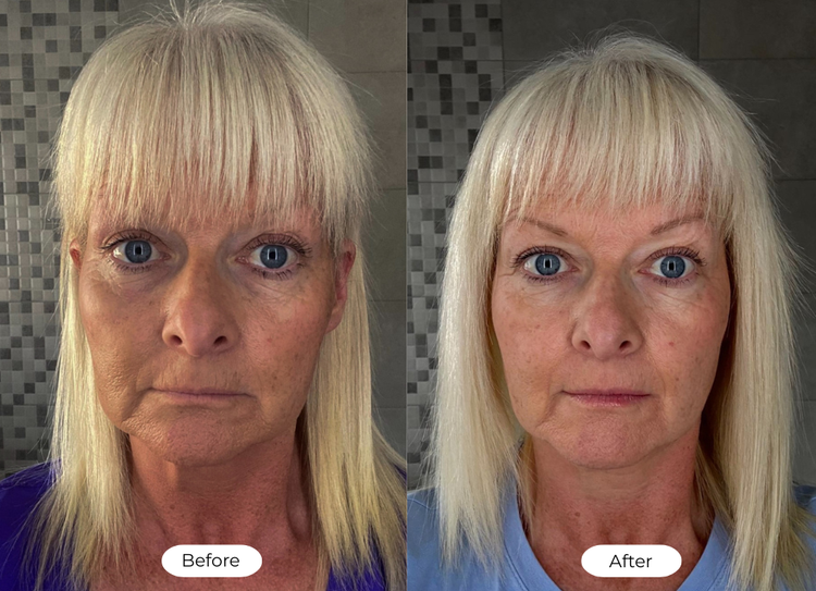 The results have been incredible! The fine lines around my lips and eyes have softened, but the biggest change is in my overall skin tone, texture and firmness. It feels like a mini facelift.